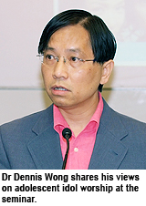 Dr Wong also shared his views on adolescent idol worship at the seminar. He encouraged youngsters to take note of the efforts the idols had made to