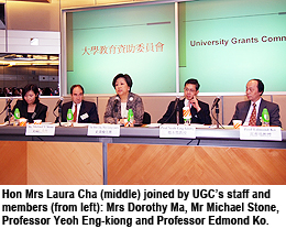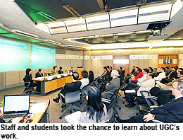 Mrs Cha said the UGC hoped to proactively explain to the community (in particular students and staff in institutions) its work, and at the same time listen to their concerns, which will be taken into account in the deliberations of the UGC.