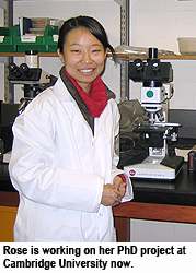 Rose Yan Pei, a 2007 MPhil graduate from the Department of Physics and Materials Science of City University of Hong Kong (CityU), has been awarded a fully-funded research studentship to pursue PhD studies at Cambridge University in the UK.