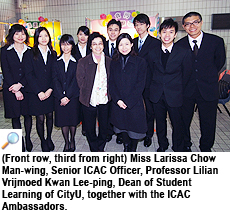 Professor Lilian Vrijmoed Kwan Lee-ping, Dean of Student Learning, said the "ICAC Ambassador Programme" would educate the public on moral virtues and promote the students' awareness of how to act with integrity. Professor Vrijmoed had meetings with employers of different companies and was informed that the trait of integrity in a job candidate was regarded by prospective employers as one of the most valued character assets.