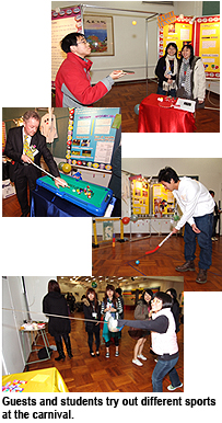 Under the banner "Connecting the World through Sports", the event proved a fun way of uniting exchange students from around the world and enhancing cross-cultural awareness. The venue was adorned with booths featuring different sports, including basketball, fencing, football, ice-hockey, rugby, snooker, table-tennis and taekwondo. Various games were set up to provide visitors with an opportunity to try their hand at their chosen sport.