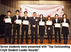 The highlight of the inauguration ceremony arrived with the award presentation of the inaugural “Top Outstanding CityU Student Leader Awards”. The awards are open to all students who have served as a member of the executive committee of the Students’ Union or a committee member of other student associations and societies, as recognition of their contributions to serving the students and the community. Seven students were honoured.