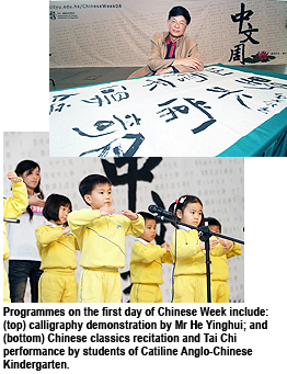 The Department of Chinese, Translation and Linguistics (CTL) at City University of Hong Kong (CityU) is holding “Chinese Week 2008” from 11 March to 14 March with seminars, performances and game booths to promote Chinese language and literature.
