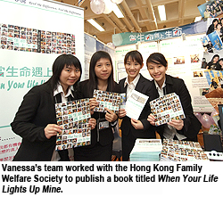 Vanessa Lai Wing-shan’s team worked with the Hong Kong Family Welfare Society to publish a book titled When Your Life Lights Up Mine, to help people form a more positive outlook on life. Not only did the students apply the skills they had learnt during coursework, the stories related by the interviewees also served as a real-life lesson in how to overcome adversity.