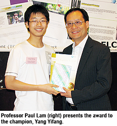In her speech at the ceremony, Professor Lilian Vrijmoed Kwan Lee-ping, Dean of Student Learning, said, “The e-portfolio project is one of our hugely successful teaching projects and I hope students can consolidate what they learn and continue to use this mode of reflection in their study lives.” Professor Paul Lam Kwan-sing, Acting Vice-President (Undergraduate Education), also attended the ceremony and presented the award to the competition champion.