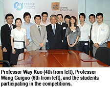 Six School of Law (SLW) students at City University of Hong Kong (CityU) have received prestigious prizes at four international competitions, showcasing their strength and the international standard of education at CityU. To acknowledge their success, SLW held a certificate presentation ceremony attended by Professor Way Kuo, CityU President, and Professor (Chair) Wang Guiguo, Dean of SLW.