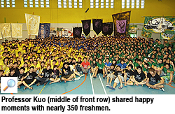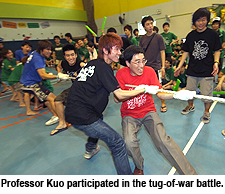 Professor Kuo was warmly welcomed by the freshmen with a hearty round of applause and he not only refereed the tug-of-war battle, but also took part in it.