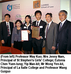 "The scholarship motivates me to perform better and lessens the financial stress on my family," said Yip Man-kit. "My sister and I are able to dedicate ourselves to further studies and complete our degree courses. It also highlights the commitment of CityU School of Law in acknowledging students' achievements and motivating them to do the best they can."
