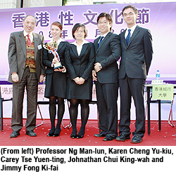 The team comprised Jimmy Fong Ki-fai, Year 2 student from the Department of Public and Social Administration; Carey Tse Yuen-ting, Year 1 student from the same department; Karen Cheng Yu-kiu, Year 2 student from the Department of Marketing; Johnathan Chui King-wah, Year 2 student from the Department of Information Systems.