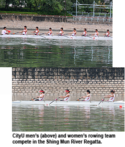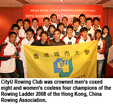 For the women's division, the calculation was based on results in five events at the Shing Mun River Regatta and the 30th Hong Kong Rowing Championships. CityU Rowing Club women's team won three golds, one silver and a fourth place in total, earning 24 points altogether to win the champion's title in the women's coxless four. These outstanding results demonstrate the excellent sporting talent among CityU students.