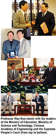 As a foreign member of the Chinese Academy of Engineering, Professor Kuo visited Mr Xu Kuangdi and Mr Pan Yunhe, the President and Vice President of the Academy, to explore the possibility of future collaborations between CityU and the Academy. Both institutions plan to jointly organise a members’ conference in Hong Kong in 2009 as part of the celebrations for the 25th anniversary of CityU.