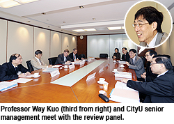 The panel members were first greeted by Professor Way Kuo, the President, and the University’s senior management, including Professor Richard Ho Yan-ki, Provost, Professor Roderick Wong Sue-cheun, Vice-President (Research and Technology), and Professor Paul Lam Kwan-sing, Vice-President (Student Affairs) and Associate Provost (Academic Planning and Undergraduate Education). They were briefed on CityU’s strategic direction and latest developments.