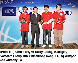 Besides a trophy and a cash award of HK$30,000, the team has the chance to join the two-month Summer Internship Programme at IBM. “It will give us a valuable opportunity to learn how a sizable company like IBM operates and receive professional training in addition to our current studies,” Anthony added.