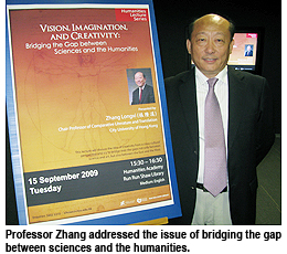 Speaking in the new Humanities Academy of the Run Run Shaw Library, Professor Zhang delivered a lecture entitled “Vision, Imagination and Creativity: Bridging the Gap Between Sciences and the Humanities”.