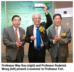 Professor Roderick Wong Sue-cheun, Vice-President (Research and Technology) and Dean of Graduate Studies, welcomed the guest speaker before Professor Way Kuo, University President, paid special tribute to the joint efforts made by the co-organisers that allowed such luminaries as Professor Fert to visit CityU and deliver such high-level talks.