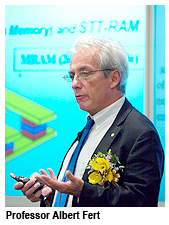 Professor Fert pointed out that other applications had emerged in this new research field, promising developments in telecommunications. “In my talk, I will review some of the most promising directions of today: spin transfer phenomena, spintronics with semiconductors, molecular spintronics, single electron spintronics, Spin Hall Effect (SHE) and Quantum Spin Hall Effect (QSHE). Spintronics with semiconductors aims to achieve some fusion between conventional electronics and spintronics.”