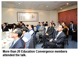Twenty members and executive committee members of Education Convergence attended the event, including Mr Alan Chow Ping-yan, Chairman of Education Convergence and Principal of Holy Carpenter Secondary School; Mr Hui Wai-tin, Vice-chairman of Education Convergence and Senior Lecturer, Department of Education Studies, Hong Kong Baptist University; Mr Ho Hon-kuen, Vice-chairman of Education Convergence and Vice-principal of Elegantia College; and Dr Francis Cheung Wing-ming, Secretary General, Hong Kong Examinations and Assessment Authority. Also attending the event were Professor Chan Chi-hou, Acting Provost, and Professor Julia Tao Lai Po-wah, Chief-of-Staff of CityU.