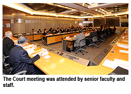 Dr Norman Leung Nai-pang, Pro-Chancellor of CityU, presided over the third meeting of The Court on 8 December. In his opening remarks, he pointed out that promoting the interests of CityU was undoubtedly the most important function of The Court. “This year has been particularly memorable as the University has celebrated its 25th anniversary,” Dr Leung said. “I recall that nine or ten years ago we at CityU aspired to be one of the top 200 universities in the world. We have in a relatively short time span exceeded these expectations to be ranked 124th according to The Times Higher Education Supplement’s World University Rankings in 2009,” he said.