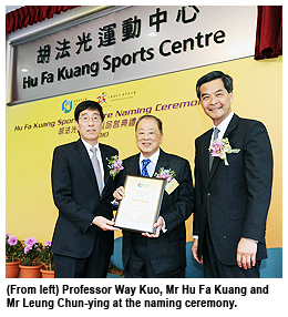 Thanking Mr Hu for his generous support, Professor Way Kuo, University President, said it was a great honour for CityU to have the sports centre named after Mr Hu.