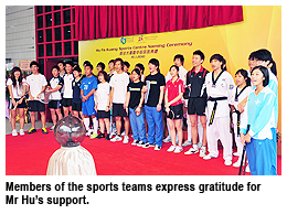 At the end of the ceremony, representatives from the sports teams presented a specially-made card to Mr Hu to express their gratitude for his support.