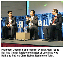 Professor Sung shared his views on the post-80s dilemma confronting Hong Kong and its effect on university education. He stressed the importance of whole person development and an awareness of current affairs. He also voiced his concern regarding post-80s students being too career-orientated rather than obtaining knowledge beyond the classroom.
