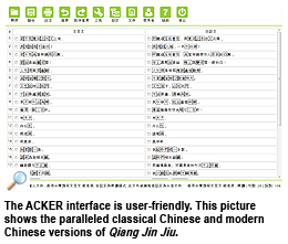 The user-friendly ACKER interface is web-based and compatible with most web browsers. Without installing any new software, users can simply upload a piece of classical Chinese text and its corresponding modern Chinese version, and the system will auto-align and verify the two versions, by sentences and words. This would assist teachers and publishers in preparation of teaching materials, besides encouraging students to take greater interest in classical Chinese.