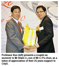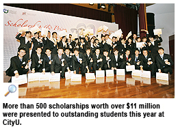 , including charity funds, professional institutions, companies and individuals, were presented with souvenirs by Professor Way Kuo, President of CityU, at the annual Scholarship and Prize Presentation Ceremony, at which more than 500 scholarships worth over $11 million were given to outstanding students.