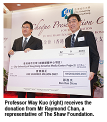 Professor Kuo said the generous donation from The Shaw Foundation was an event worthy of joyous celebration on this auspicious day of Mid-Autumn Festival. “The support extended to the University by Sir Run Run will help CityU achieve its goals as stated in the University’s Strategic Plan 2010-2015: to become a leading global university known for excellence in research and professional education,” Professor Kuo said. “We are indebted to Sir Run Run for his generosity and would like to thank him for his dedicated contribution to CityU and education.”