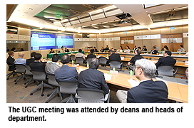 Mrs Cha, who was accompanied by Mrs Stella Lau Kun Lai-kuen, UGC member, Mr Tai Hay Lap, UGC member, and Mr Michael Stone, Secretary-General, UGC, began by offering the assembled deans and heads of department a broad overview of the role of the UGC in Hong Kong’s higher education sector and highlighted key issues close to the heart of both the UGC and CityU.