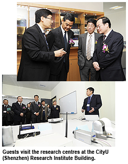 Guests officiating at the ceremony included Mr Yuan Baocheng, Vice Mayor, Shenzhen Municipal Government, Mr Liu Yingli, Chairman of the Shenzhen side of the Steering Group on Shenzhen/Hong Kong Co-operation in Innovation and Technology, and from CityU, the Hon Leung Chun-ying, Council Chairman, Professor Way Kuo, President, and Professor Horace Ip Ho-shing, Acting Vice-President (Research and Technology). Mr Xu Qin, Mayor of Shenzhen Municipal Government who was unable to attend the ceremony due to his busy schedule, hosted a luncheon for Mr Leung, Professor Kuo and CityU’s senior representatives after the event.