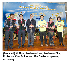 One of the major activities for Wellness March is running the Standard Chartered Hong Kong Marathon. The race helps CityU members strengthen their physical fitness and boost team spirit. At the opening ceremony, Professor Kuo presented a flag to the CityU marathon team and wished them every success in the forthcoming race. Mrs Dorothy Davies, Associate Director of Student Development Services, said the CityU team had attracted over 760 runners.
