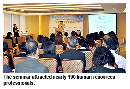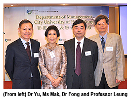 The seminar, titled “Employer’s effective strategies for attracting and engaging the post-1980’s talent” aimed to provide human resources executives a clearer understanding of characteristics of the post-80’s generation, in order to assist them in development of human resource management strategies suitable for this young generation that presumably has capabilities and attitudes that are quite different from peers.Speakers at the seminar included Ms Caroline Mak, Regional Director - North Asia, Dairy Farm Group; Dr Sunny Fong, Senior Director, HR Business Partner & Total Compensation, Asia Pacific/Middle East/Africa, McDonald’s Corporation; Professor Leung Kwok, Head, Department of Management, and Dr Eddie Yu Fu-keung, Associate Professor of the same department.