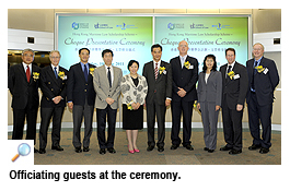 Officiating guests included Ms Eva Cheng, JP, Secretary for Transport and Housing and Chairman of the Hong Kong Maritime Industry Council (MIC); The Hon Leung Chun-ying, GBS, JP, Council Chairman of CityU; Professor Way Kuo, President of CityU, and Professor Wang Guiguo, Dean of SLW, CityU.