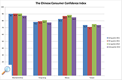 The 2nd quarter results of the Chinese Consumer Confidence Index for 2012 revealed that overall consumer confidence in Hong Kong is 77.5, a decline of 4% on the previous quarter, reversing an upward trend seen in the 4th quarter of 2011 and the 1st quarter of this year.