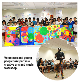 Another group of CYEP student volunteers participated in music, dancing and painting activities with children and young people from different backgrounds and communities in Hong Kong in the Community Creative Arts and Music Workshop. The workshop was collaborated with the Boys and Girls Clubs Association of the Hong Kong Jockey Club Tai Wai Children and Youth Integrated Service Centre, and Christian Service Kwun Tong Happy Teens Club.