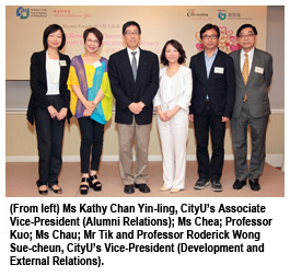 Ms Candy Chea Shuk-mui, a prominent figure in broadcasting, and CityU alumnus Mr Tik Chi-yuen, BBS, JP, Director of the Hong Kong Institute of Family Education, were the guest speakers at the forum, themed “A Rewarding Parenthood: From Communication to Intimacy” organised by the Alumni Relations Office (ARO) of CityU. Ms Dilys Chau Suet-fung, recipient of the CityU Distinguished Alumni Award, was the facilitator.