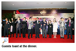 A record-high 400 donors, Council members, guests, alumni and students from City University of Hong Kong (CityU) participated in the annual thanksgiving dinner named the “CityU Student Success Dinner” on 21 November. It was an occasion to express CityU’s gratitude to its benefactors and supporters, as well as to raise funds to support student development at the University. A sum close to HK$6 million was raised.