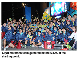 City University of Hong Kong (CityU) organised a delegation to compete in the 2012 Fubon Taipei Marathon on 16 December, the first among Hong Kong universities to do so, and its first alumni cultural exchange activity in Taiwan. These “ice-breaking” outreach activities were supported by the Eminence Society, a distinguished alumni group, and led by Mr Herman Hu Shao-ming, Council Chairman.