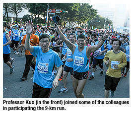 Professor Kuo noted that competing in the Taipei Marathon was part of CityU’s efforts in carrying out its Five-Year Strategic Plan, as it helped to create a global image for the University, bring its alumni closer together, and enhance the unity and harmony among the CityU community. He said that he had a dream that, with the support of alumni, the CityU Marathon Delegation could compete next year in Beijing, and in Seoul, Tokyo, London and Washington DC in the future.
