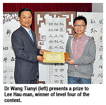 Lee Hau-man, winner of level four, has been practising Chinese calligraphy for 12 years. “The databases helped me to know the sources and meaning of the content I wrote. As a result I could write down the origin of the work I quoted, which is so important for calligraphy,” he said.