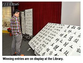 Winning entries of the calligraphy contest are on display at the Library.