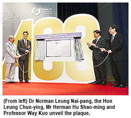 Officiating guests at the opening ceremony were The Hon Leung Chun-ying, Chancellor of CityU, Dr Norman Leung Nai-pang, Pro-Chancellor of CityU, Mr Herman Hu Shao-ming, Council Chairman of CityU, and Professor Way Kuo, President of CityU.