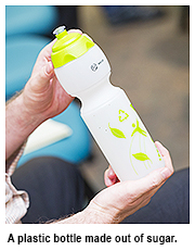 For example, it is no secret that plastic bottles are an ecological problem – used in great quantities, rarely recycled, washed up on beaches and deposited in landfills. An alternative, Professor Poliakoff explained, was to make plastic bottles out of sugar in a process that reduces the amount petroleum byproducts created and can exploit existing supply chains. The economic benefits are obvious: oil is becoming more expensive, so any product that uses petroleum will also increase in price. The environmental ones need little clarification, either: any process that reduces the amount of carbon released into the atmosphere helps.