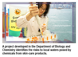 Sustainability and “green” studies feature in several other projects. “Smart Homes with Zero Carbon Emissions”, which is led by Professor Henry Chung Shu-hung in the Department of Electronic Engineering, looks at green technologies for the home; “Biofuels Production from Food Waste” is organised by Dr Patrick Lee Kwan-hon in the School of Energy and Environment and investigates turning waste into energy; while two projects from the Department of Biology and Chemistry identify the risks to local waters posed by chemicals from skin-care products and the conversion of paper waste to green fuels.