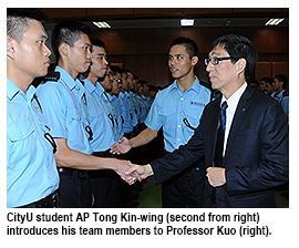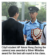 Out of the 153 college trainees, 17 were CityU students, including one female student. Of the 11 awardees, two were CityU students, Amos Hong Yan from the Department of Mechanical and Biomedical Engineering and Tong Kin-wing from Department of Electronic Engineering. They were both awarded Silver Whistles for the best-all-round performances in their class.