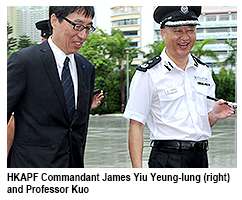 Professor Kuo was joined at the parade by Mr James Yiu Yeung-lung, Commandant of HKAPF, Mr Edwin Lam Man-wing, Assistant Commissioner of Police (SUP), and about 900 family members of the trainees and representatives from local institutions.