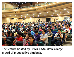 The lecture titled “The five winning skills in university that should be learned from secondary schools” delivered by Dr Ma Ka-fai, Assistant Director of the Chinese Civilisation Centre, attracted many parents and secondary school students.