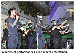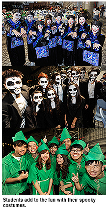 Like last year, many students donned spooky costumes for the occasion. Some came dressed as characters from the recent movie Monsters University and as scary puppets from the movie Saw, mummies and Chinese zombies. Their unique look and special style delighted participants at the banquet. In addition, several teams took part in a fashion show and sang and danced on stage.