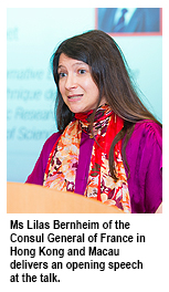 t the talk, Ms Lilas Bernheim, Deputy Consul General of France in Hong Kong and Macau delivered an opening speech in which she said Hong Kong was noted for its materialism, but noted that the audience that day would be hearing a talk about a different kind of materialism.