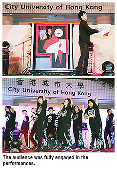 A fashion show was also held, with the participation of many students, who dressed up like characters from the movie Monsters University, traffic lights, CityU’s red doors, the video game Tetris, the Statue of Liberty, and jelly fish.